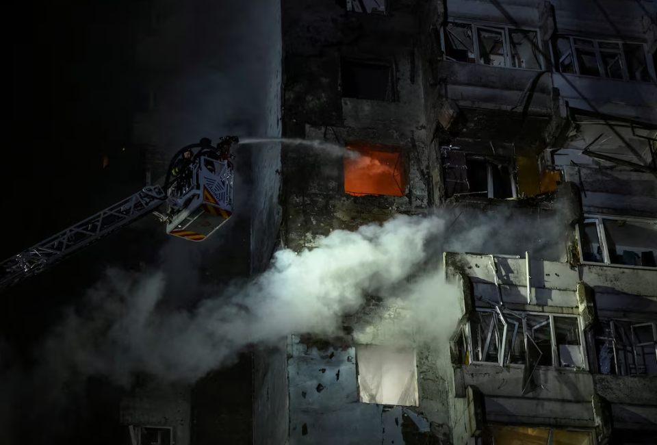 Russia launched drones and missiles overnight on Tuesday at Ukraine, killing at least three people, damaging houses and triggering fires, Ukrainian officials said.